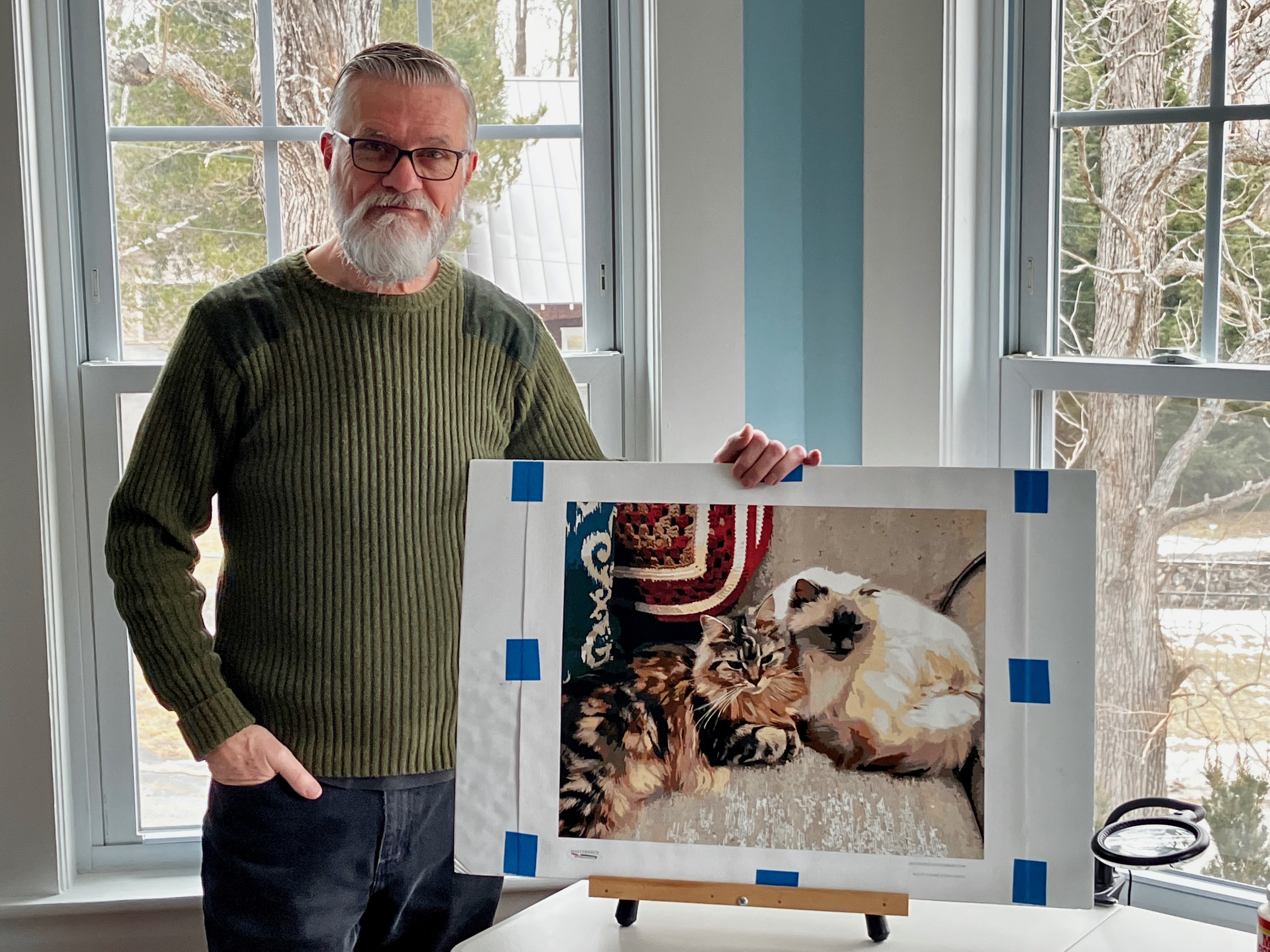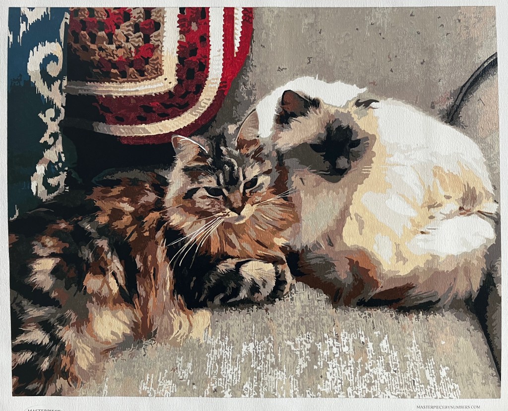I just finished painting number 8. This is a custom PBN (paint by numbers) kit that Tom ordered for me from Masterpiece by Numbers. He surprised me with it for my birthday. He had sent them a photo of our two cats, Pepper and Zazu, and they had created the custom kit for us. There was a lot of detail and it did take me some time to paint it, but I enjoyed every minute of it. I really love the way it came out. The colors are spot on. This will be a painting that we will cherish long after our cats have crossed over the rainbow bridge. Pepper just turned 6 in December and Zazu 19. We don’t know how much longer Zazu will be with us. We hope for a long time yet.