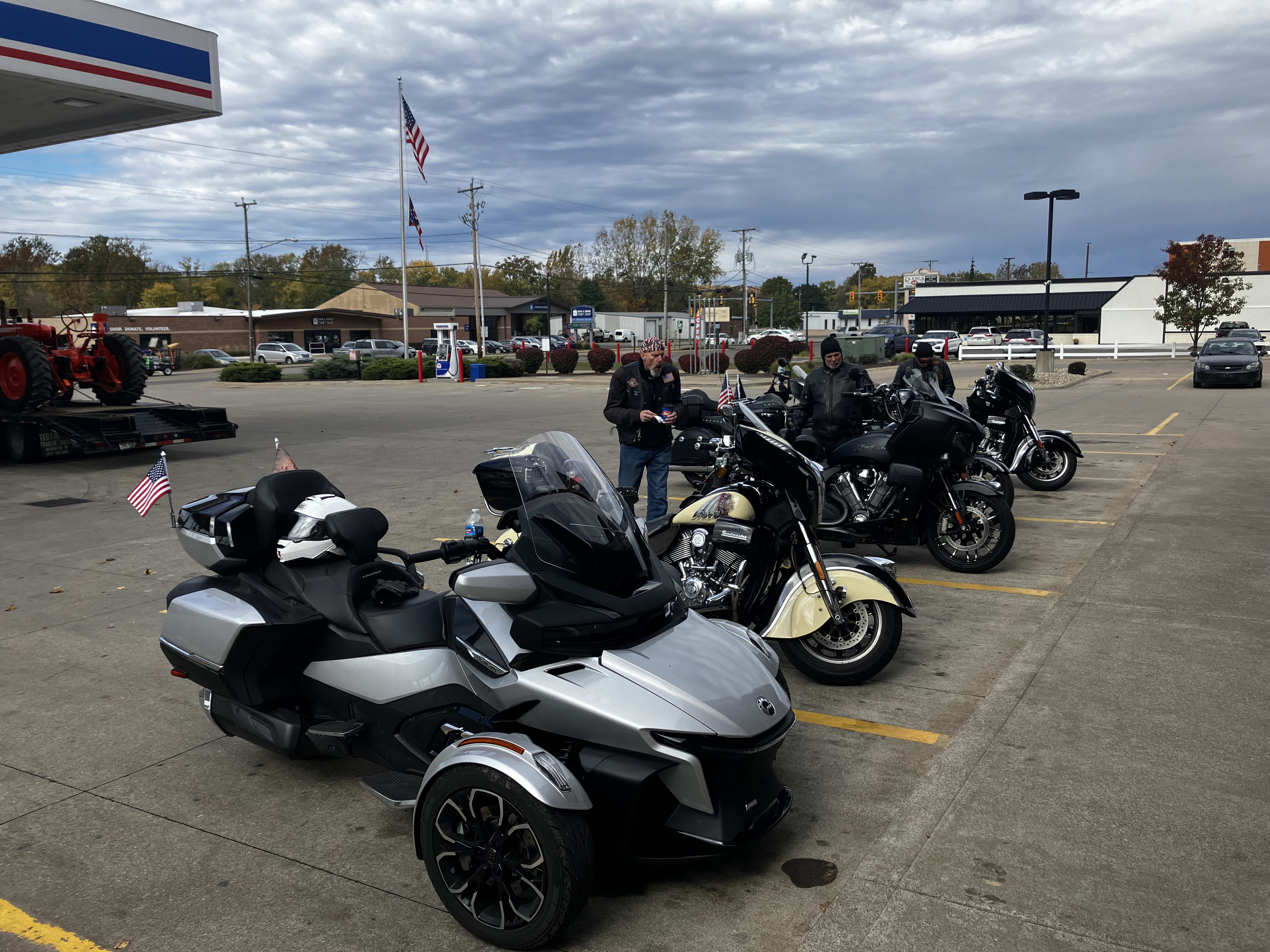 From 2019 – 2022 the rides have been south to Tennessee and North Carolina. This year we decided to head west to Ohio. I rode down from New Hampshire on my new CanAm Spyder RT Limited and then rode with them from Long Island. The first day we rode 575 miles to Zanesville, OH.