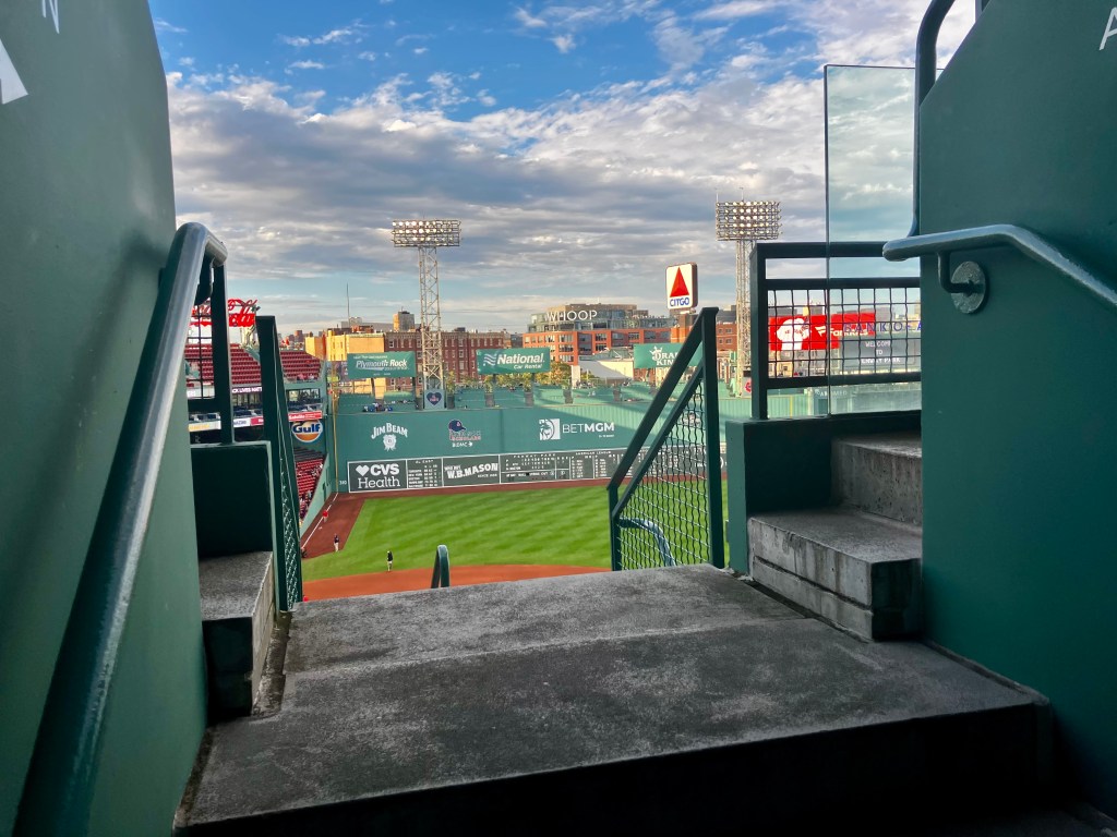 We decided to stay overnight in Woburn to make the trip from Newport more manageable. An Uber got us to Fenway around 4 p.m., giving us time to soak in the atmosphere. What a vibe—being in the heart of Boston, surrounded by Sox fans in their gear, the smell of sausages sizzling from street vendors, and the buzz of anticipation in the air. I couldn’t resist buying a Red Sox hat. We grabbed food, found a spot to sit, and chatted with fellow fans.