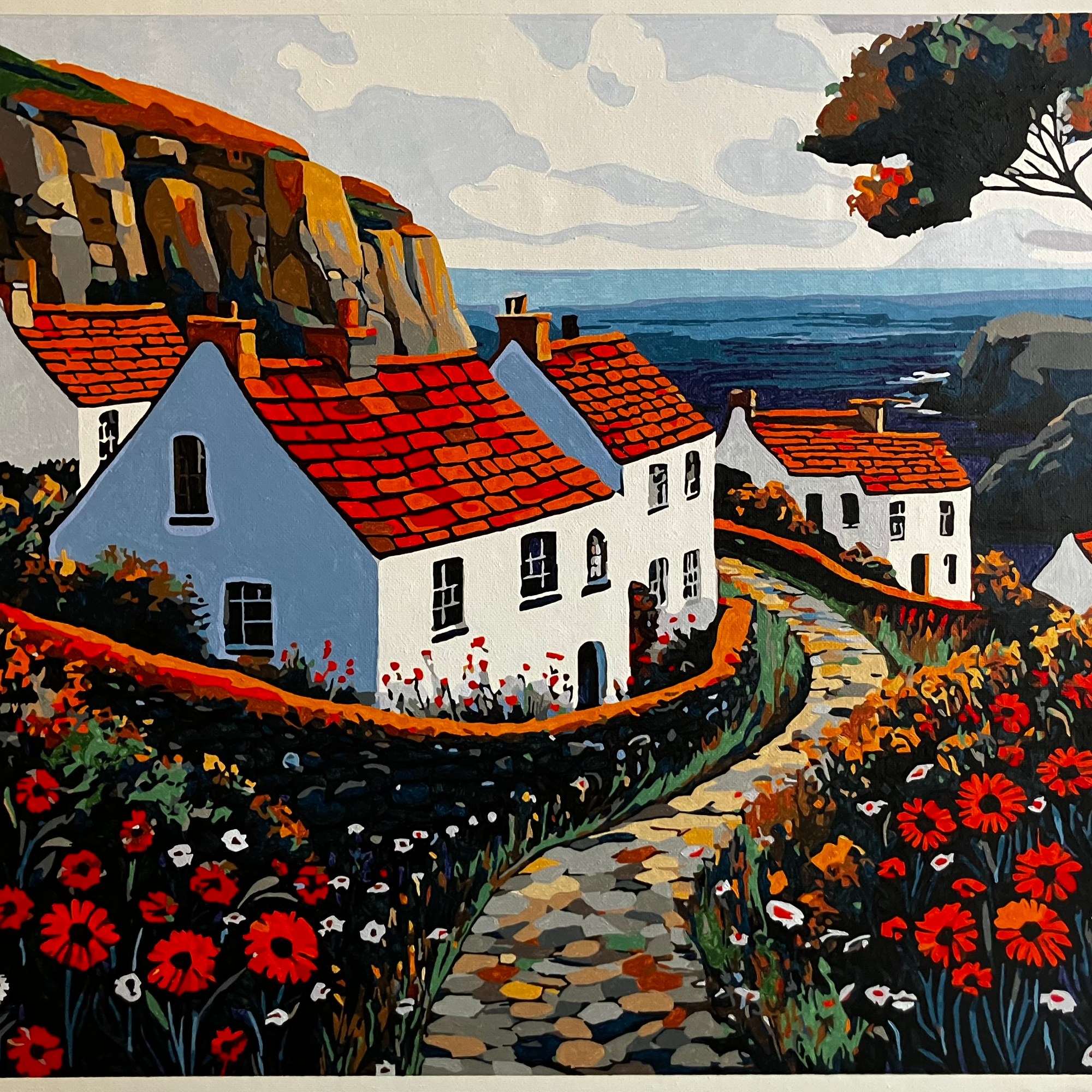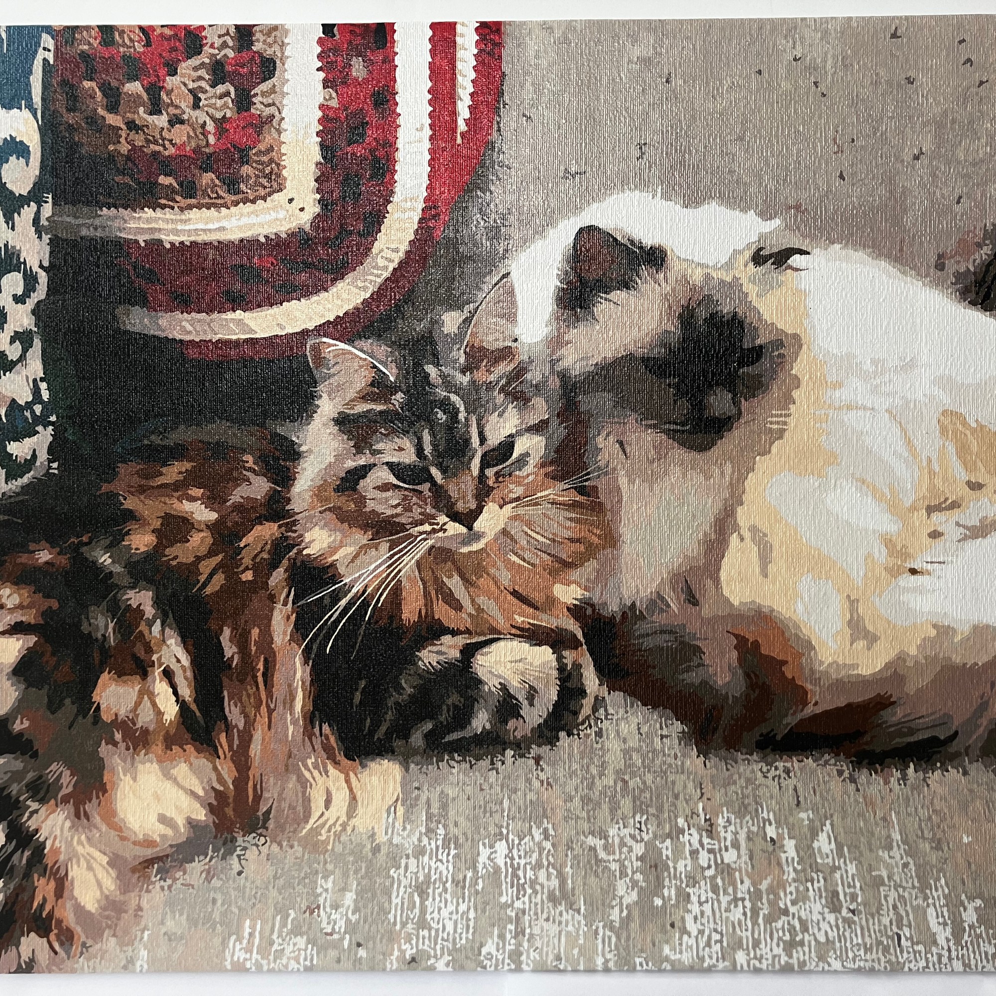 I enjoy creating artwork using paint-by-numbers kits. It’s a relaxing hobby. The process takes patience, but I find it both calming and satisfying. Seeing a piece come to life, and knowing the hours were well spent, makes the finished work especially meaningful. I also build my own frames, which adds another creative touch before finding just the right spot to hang each piece. The painting of our cats Pepper and Zazu was a custom kit created from a photograph I submitted. I like trying different themes. My current work in progress is a motorcycle theme. Just in time for riding season!