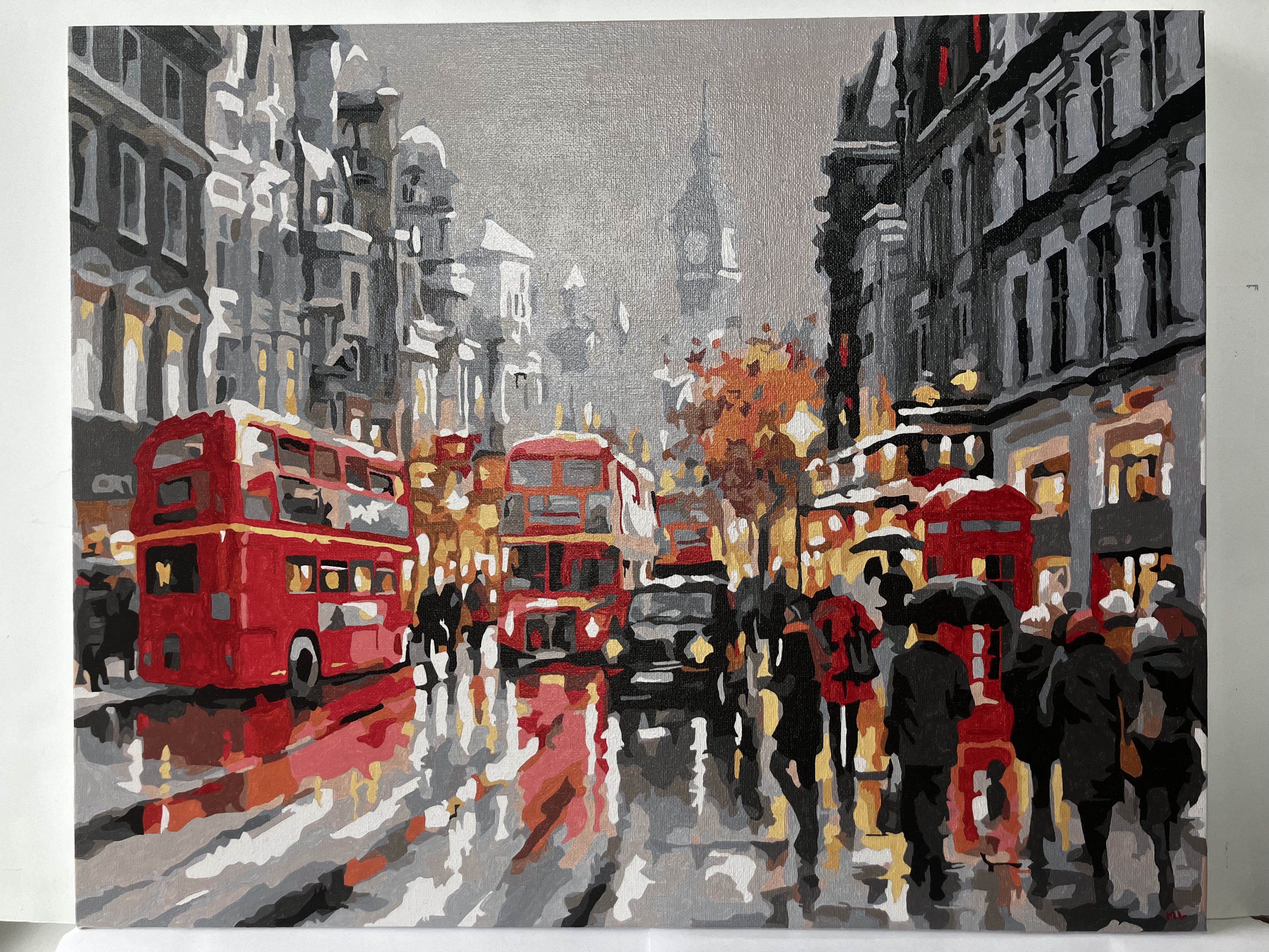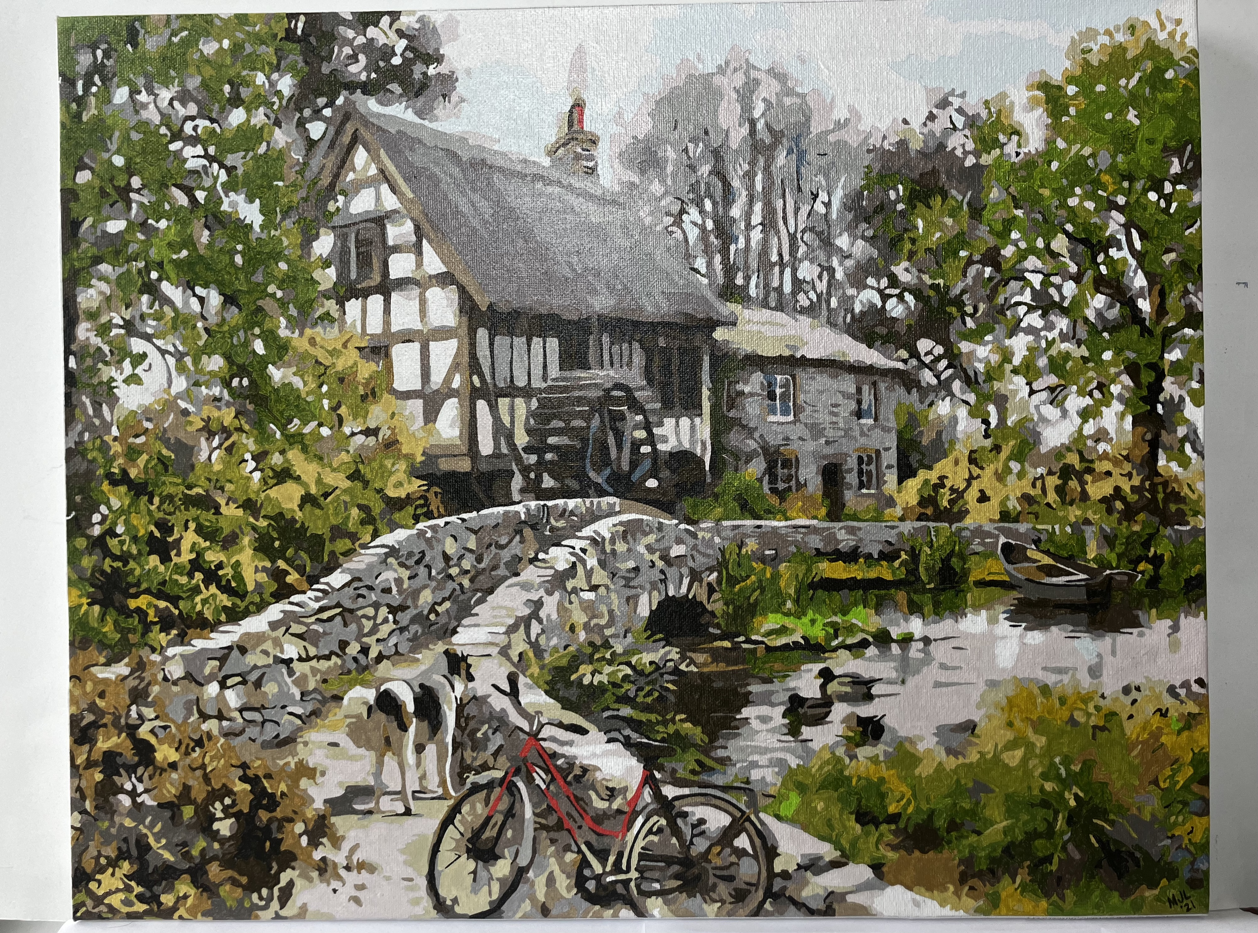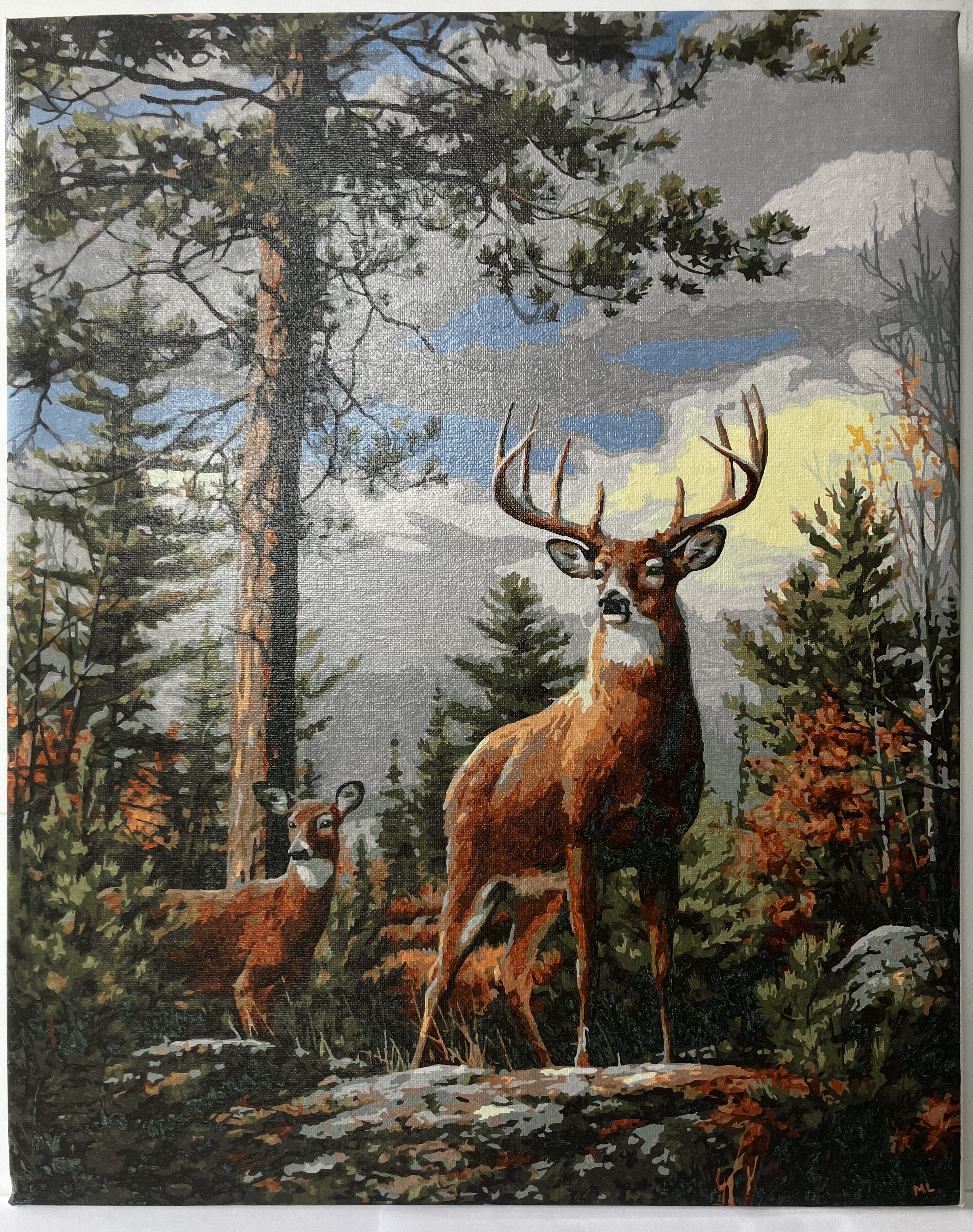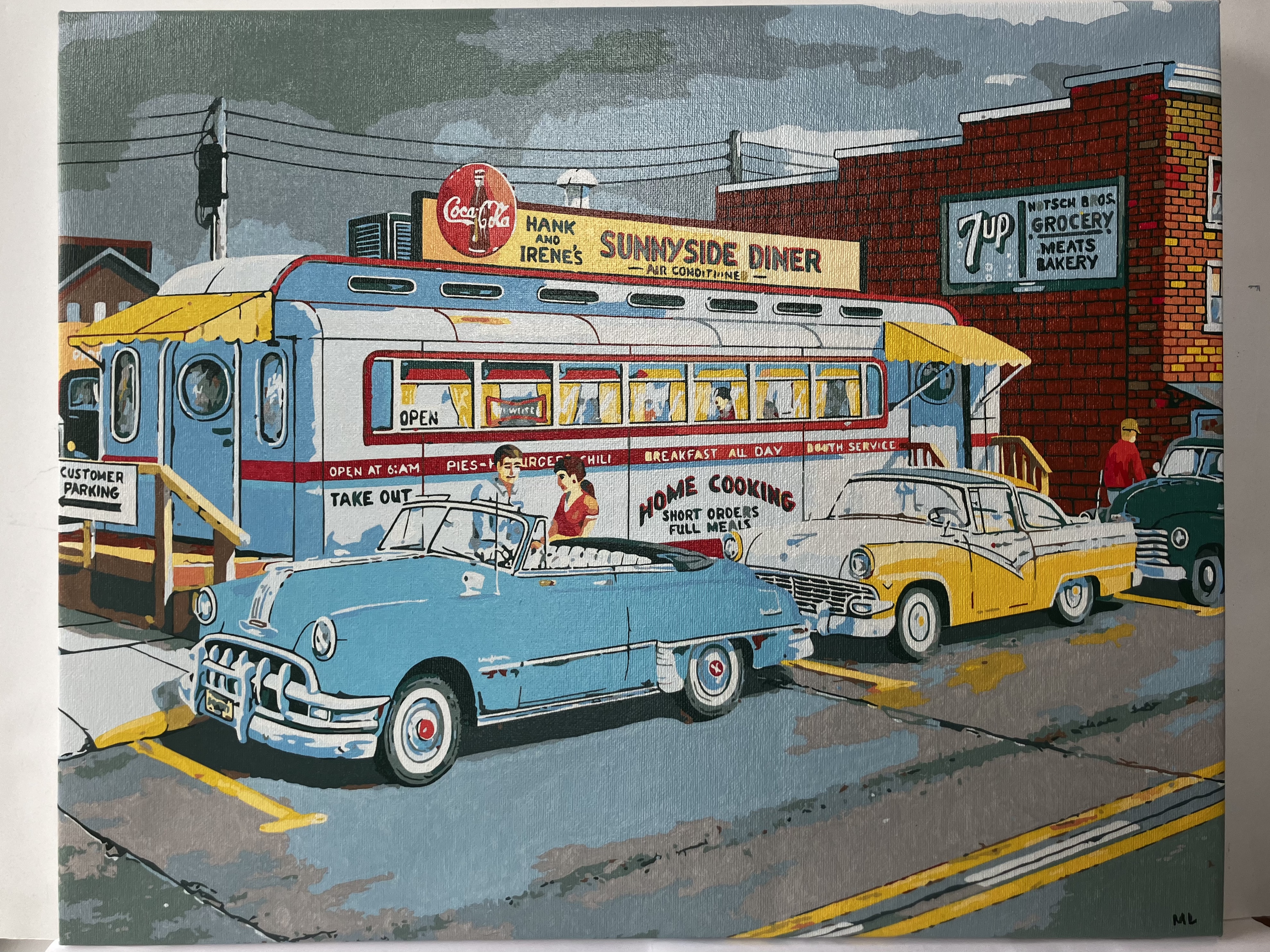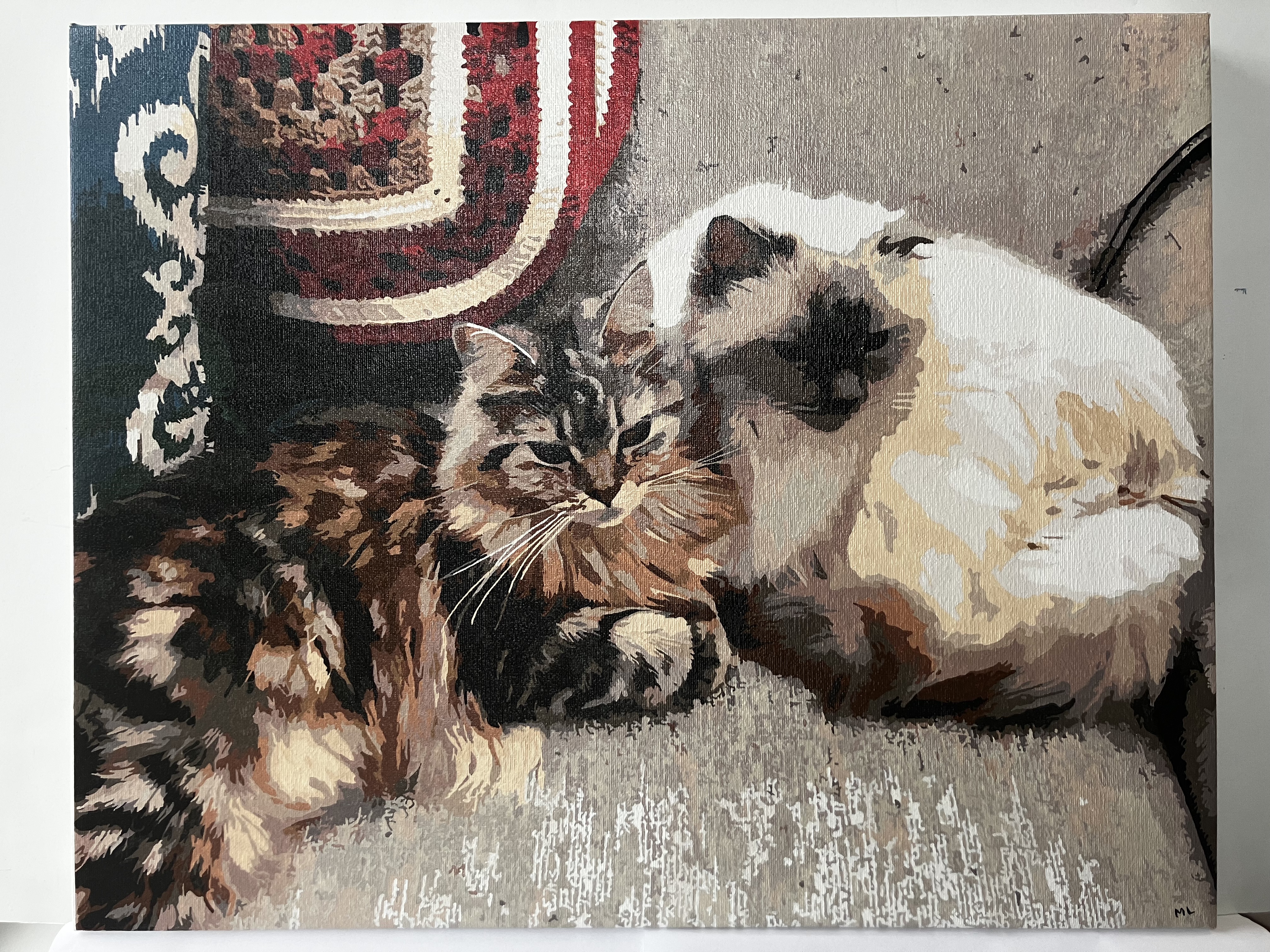 I enjoy creating artwork using paint-by-numbers kits. It’s a relaxing hobby. The process takes patience, but I find it both calming and satisfying. Seeing a piece come to life, and knowing the hours were well spent, makes the finished work especially meaningful. I also build my own frames, which adds another creative touch before finding just the right spot to hang each piece. The painting of our cats Pepper and Zazu was a custom kit created from a photograph I submitted.